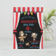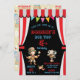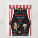 Circo temática cualquier invitación de cumpleaños de edad, invitación perfecta para invitar a sus invitados a su gran fiesta de cumpleaños. El frente cuenta con una gran carpa superior con pancarta de aferramiento, timbre de anillo, que representa elefantes y bandera de circo. La parte trasera de la invitación tiene huellas de circo, elefantes, payasos y sello interpretativo. Edite todo el texto usted mismo cuando lo solicite.