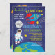 Esta fresca invitación a la fiesta de cumpleaños con temática espacial incluye un barco con cohetes, astronauta, estrellas y tierra contra un fondo de cielo nocturno, con "3.. 2. 1..bate" con letras brillantes. Fácil de personalizar con las opciones de personalizado. Utilice el botón "Personalizar" para personalizar del producto o agregue texto. ¡Busca artículos que coincidan en nuestra tienda!