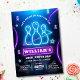 Invitación de cumpleaños de bolos, fiesta de neón