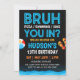 Agrega un toque de encanto al gran día de tus hijos con la Invitación de cumpleaños de Bruh Pool Party. Envía esta hermosa invitación para reunir a tus seres queridos para su importante hito.