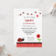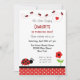 Invitación de cumpleaños con tema ladybug y combinación de color rojo-negro.