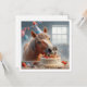 Una invitación muy dulce con una imagen de un caballo comiendo un pastel mientras lleva un sombrero de fiesta. Esta es una excelente tarjeta para el amante de los caballos.