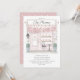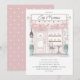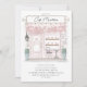 Invite a sus invitados a una deliciosa celebración con esta invitación temática de café parisino. Con una encantadora ilustración de acuarela de una fachada de panadería francesa vintage, completa con flores suaves de color rosa, pasteles delicados en la ventana y una acogedora mesa de café, este diseño es perfecto para crear un evento memorable y elegante.