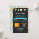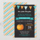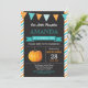 Invitación de cumpleaños de calabaza para niño. Pequeña Invitación de cumpleaños a la caída de calabaza. 1.ᵉʳ Primer Cumpleaños. rayas color turquesa naranja y agua, fondo de pizarra. Para una mayor personalización, haga clic en el botón "Personalizar" y utilice nuestra herramienta de diseño para modificar esta plantilla.