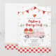 Celebra con estilo dulce con esta encantadora invitación de cumpleaños temática de fresa que presenta un camión rosa vintage lleno de canastas de bayas, globos y acentos florales. El borde de gingham juguetón y los detalles de confeti festivos crean un diseño alegre perfecto para fiestas infantiles, cumpleaños de verano o celebraciones temáticas de bayas. Personaliza con los detalles de tu evento y deleita a tus invitados con una invitación única y llamativa que marca el tono para un día lleno de diversión.