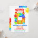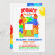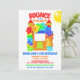 Esta invitación de cumpleaños de casa de rebote es genial para cualquiera que celebre con una fiesta saltarina. El diseño de globos y casa de rebote presenta una variedad de colores primarios y es perfecto para niños y niñas. ¡Invite a sus invitados a saltar para pasar un buen rato!