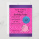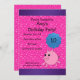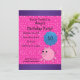 Invitación de 5" x 7" con fondo de estrellas de cerdo lindas de color rosa, con franja morada y un falso círculo azul purpurina de vieiras para cambiar el año de cumpleaños por el primero, el segundo, el tercero, el cuarto, el quinto, el sexto, el séptimo, el octavo, el noveno, el décimo, el décimo primer, el décimo segundo, el cuarto, el décimo sexto, el séptimo, el tercer año 0, 40, 50, 60, 70, 80,90