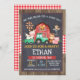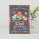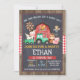 Invitación de cumpleaños a Chalkboard Tractor de granja para niños La encantadora invitación de cumpleaños de este niño a un corral de ganado incluye un granero rojo, un tractor verde, un cerdo, un caballo y una vaca. El diseño se compone de un marco de pizarra y de un fondo de madera y de yeso rojo. Esta es una linda invitación y una manera de invitar a los amigos de su hijo a su fiesta de cumpleaños con el tema del patio.