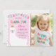 Invitación de cumpleaños rosado chica con una Llama Cute y una foto personalizada