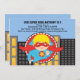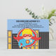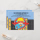 Empieza tu celebración con esta invitación SUPER. ¡Genial para ese Super Hero en tu vida! Es una invitación adorable con un fondo azul claro. Hay edificios de ciudades amarillas y negras con un super-héroe lindo saliendo de un círculo cerrado. Tiene el pelo rubio y está usando los colores rojo y azul, echa un vistazo a los muchos otros productos y diseños en esta línea. ©Ilustraciones JW