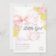 Celebra la llegada alegre de una niña con nuestra invitación de baby shower "Dulce niña". Esta encantadora tarjeta presenta delicadas flores de acuarela rosa pastel y rodajas de limón suaves, y un lazo bellamente ilustrado.