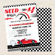 ¡Arranca los motores para una celebración de cumpleaños inolvidable con esta invitación de cumpleaños de coche de carreras Need 4 Speed para niños! Diseñada con audaces coches de carreras rojos, gráficos de velocímetro, huellas de neumáticos y detalles clásicos de bandera de cuadros en blanco y negro, esta invitación es perfecta para una fiesta de cumpleaños número 4, un cumpleaños rápido, una fiesta en una pista de carreras o una celebración de pequeño corredor.