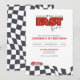 Invitación de Cumpleaños de Coche de Carreras - Es un Rápido - Invitación de Fiesta de Cumpleaños Número Uno con Diseño de Bandera a Cuadros Negros y Blancos