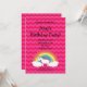 Invitación de 5" x 7" con lindo patrón de chevrons color rosa del unicornio para una fiesta de cumpleaños con temática unicornio