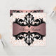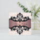 Elegante invitación de cumpleaños con damasco floral rosa y negro