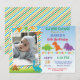 Invitación de cumpleaños de dinosaurio con foto personalizada. Invitación de fiesta de cumpleaños de Dino. Cumpleaños de niño. Cumpleaños de niños. 1er Primer cumpleaños. 1º 2º 3º 4º 5º 6º 7º 8º 9º 10º 11º 12º 13º 14º 15º, cualquier edad. Fondo de rayas naranja verde azul amarillo. Digital imprimible. Para una mayor personalización, haga clic en el botón "Personalizar" y use nuestra herramienta de diseño para modificar esta plantilla.