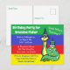 Tarjetas de invitación de cumpleaños de dinosaurio para el primer cumpleaños de un niño pequeño con colores primarios rojo, verde, azul y amarillo.