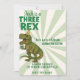 ¡Prepárate para pisotear, rugir y fiesta un poco más! Esta adorable invitación de cumpleaños "Three-Rex" es perfecta para la celebración del tercer cumpleaños de tu amante de los dinosaurios. Con un ilustracion lúdico T-Rex en vivos tonos verdes con divertidos acentos de la jungla, es una forma de dino-mita de invitar a los huéspedes a pasar un buen rato. Fácilmente personalizar con el nombre de su hijo, los detalles del fiesta y la información de RSVP. ¡Genial para los niños, chicas o cualquier fan del dino que cumple tres años!