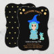Invitación de cumpleaños de disfraz con patrón de estrellas en fondo negro en la parte posterior. Ideal para fiestas de cumpleaños y Halloween. Todos los textos y números están listos para ser personalizados. Nacer en octubre... es increíble... ¡puedes tener una fiesta de disfraces!