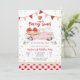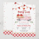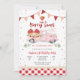 Celebre el primer cumpleaños de sus pequeños con esta encantadora invitación temática de fresas. Con una camioneta rosa vintage llena de canastas de fresas, globos festivos y banderines alegres, este diseño establece el tono perfecto para una celebración dulce como una baya. El borde de gingham y el fondo de confeti juguetón añaden un toque de encanto de granja, lo que lo hace ideal para fiestas de verano, reuniones de jardín o cumpleaños con tema de fresas. Personalice con los detalles de su evento y deleite a sus invitados con una invitación divertida y caprichosa que es tan dulce como la ocasión.