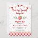 Celebra el día especial de tus pequeños con esta encantadora invitación de cumpleaños de fresa. Con una dulce frontera de gingham rojo, banderines festivos y un motivo central de fresa, este diseño es perfecto para una fiesta temática de bayas. Los toques florales juguetones y el fondo alegre de lunares añaden un toque caprichoso, lo que lo hace ideal para niños pequeños y jóvenes. Personaliza con los detalles de tu fiesta para crear un delicioso recuerdo que tus invitados amarán.