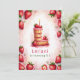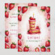 Celebra un cumpleaños especial con esta deliciosa carta de fresa "L", ¡invitación a torta! Este encantador diseño acuático cuenta con una tarta divertida y festiva en forma de letra "L", decorada con fresas frescas, hielo rosa y una vela de cumpleaños brillante. El suave fondo rosa con fresas dispersas aporta un toque divertido. Personalice con el nombre, edad y detalles del fiesta de su hijo para una celebración de cumpleaños con temática de fresa única. Perfecto para los más pequeños que aman a los fiestas de la fruta o los cumpleaños del verano.