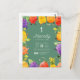 Este diseño es parte de la colección de fiesta de cumpleaños infantil 'Frutas Bailando'. Cuenta con papelería adorable con frutas tropicales de acuarela como papaya, uvas, fresas, naranjas y piñas junto con hojas y notas musicales. Perfecto para celebrar el cumpleaños de un niño o niña.
