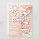 Celebre el día especial de su hijo con esta divertida invitación de cumpleaños retro! Con flores de margarita juguetonas, arcoíris, mariposas y una furgoneta hippie, captura el espíritu divertido de los 60 y 70. Perfecta para una fiesta de ?Joven, salvaje y tres?, este diseño vibrante establece el tono para la paz, el amor y la alegría. Personalice con sus detalles y cree un recuerdo memorable para los invitados.