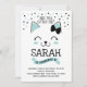 Invitación de cumpleaños de gatos gatos gatos gatos gatos. Verde azulado y negro. Personalizar con tus propios detalles. También disponible en rosa con negro y morado con negro.