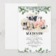 Introduce un toque de campo en el día especial de tu pequeño con nuestras adorables invitaciones de cumpleaños de granja para niños. Con una elegante combinación de fondo blanco puro junto con elegantes hojas de eucalipto y adorables animales de granja en acuarela como vacas, cerdos, ovejas, perros, gallinas, conejos, patos y gallos. El diseño no solo es encantador sino también altamente personalizable, lo que lo convierte en la opción perfecta para preservar los recuerdos de la infancia.