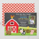 Invitación al cumpleaños de la granja con foto del personalizado. Barnyard de campo para animales. Pollo de cerdo de vaca de grano. Boda o Chica. .1 Primer cumpleaños. 1.ª 2ª 3ª 4ª 6ª 7ª Octava Novena 10ª 11ª 12ª 13ª 14ª, Cualquier Edad. Fondo marcado rojo y blanco. Digital Imprimible. Para una mayor personalización, haga clic en el botón "Personalizar" y utilice nuestra herramienta de diseño para modificar esta plantilla.