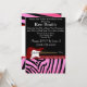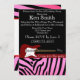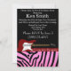 Invitación perfecta para el cumpleaños, en un regalo de amigos. Esta tarjeta rosa de estampado animal de cebra #18 hará de cualquier cumpleaños el mejor recuerdo de la historia, con la invitación rosa y negra. Guitarra eléctrica roja y franja roja. Utilice nuestra plantilla fácil para personalizar con los detalles de su fiesta.