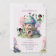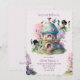 Invitación de cumpleaños de jardín de hadas con flores silvestres y un bosque encantado. Hada afro con un tema caprichoso. Plantilla de invitación editable.