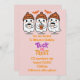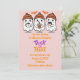 INVITACIÓN DEL CUMPLEAÑOS naranja Y ROSA, DISEÑO CUTIDO CON FANTASMAS Y RÓTULO DE TRICK O TRATAMIENTO.