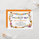 Monada invitación de cumpleaños de Halloween con un marco de Halloween de fantasmas, calabazas, sombreros de brujas, estrellas y dulces. Se establece sobre un fondo blanco clásico con una plantilla de invitación fácil de personalizar.