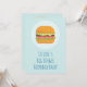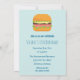 Una invitación de cumpleaños con un tema de hamburguesa. Diseñada con una ilustración de una hamburguesa simple. Lechuga, tomate y hamburguesa. Simple y delicioso.