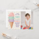 Celebre el día especial de su pequeño con esta dulce y colorida Invitación de Cumpleaños de Helado Editable. Diseñada con tonos pastel juguetones e ilustraciones lindas estilo acuarela, esta invitación es perfecta para cumpleaños de verano, reuniones de helado o cualquier fiesta llena de diversión. Personalice fácilmente todo el texto con el nombre de su hijo, edad, detalles de la fiesta e información de RSVP. Esta plantilla de invitación vertical de 5x7” es totalmente editable utilizando las herramientas de diseño de Zazzle – no se necesita software. ¡Ideal para niñas y niños que aman los dulces y la diversión del verano!