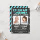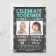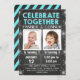 Esta linda invitación de cumpleaños de invierno con pizarra para gemelos niños o una fiesta de cumpleaños conjunta de niños. Este diseño presenta algunos copos de nieve plateados falsos en una imagen de fondo de pizarra.