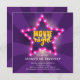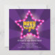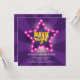 Invitación de la fiesta de cumpleaños de la noche de la película estrella de neón sobre un fondo radial morado con una espalda coincidente.