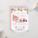 Pink Floral Barn Tractor Farm Birthday Invitation Cute invitación a la granja para el cumpleaños con un bar rosa, un tractor y arreglos florales. Esta invitación a los jardines también incluye una vaca, un cerdo y un pollo. Una manera dulce de invitar a los invitados a una fiesta de cumpleaños temática de la granja para una niña.