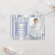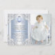 Hermosas invitaciones de cumpleaños de la princesa Cenicienta con un hermoso carruaje de princesa azul y plateado sobre un fondo azul y plateado con remolinos de Cenicienta. Esta elegante foto de cualquier invitación de cumpleaños de Cenicienta se personaliza fácilmente para su evento simplemente agregando su foto y detalles en el estilo de fuente y redacción de su elección.