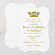 Invitación de cumpleaños de la princesa de la corona con brillo dorado. Personalice con texto para cualquier evento.