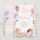 Transporta a tus invitados a un jardín encantado con esta caprichosa invitación de cumpleaños de la princesa hada floral. Con delicadas flores de acuarela y un toque de magia, este diseño elegante es perfecto para crear una atmósfera de cuento de hadas para el día especial de tu pequeño. Personaliza fácilmente los detalles para hacer de esta encantadora invitación algo único y establece el tono para una celebración verdaderamente memorable.