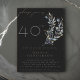 Estas elegantes invitaciones para el cumpleaños de adultos negros y dorados están diseñadas con ramas de oliva de color agua pintadas a mano. Personalizar con los detalles de su día especial para las invitaciones clásicas memorables para cualquier hito de cumpleaños