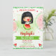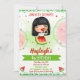 Invitación de cumpleaños de sandía para chica. Una en una invitación de un fiesta melón. Una invitación para tu pequeña fiesta de cumpleaños con sandías rojas y verdes y chica de morena. Invita a tus amigos a una dulce celebración con esta invitación a la sandía roja y verde. Simplemente edite esta plantilla fácil de usar en el menú Personalización para hacerlo especial.