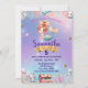 Adorable invitación de cumpleaños de sirena shimmery. Este diseño está repleto de pinturas en tonos pastel "bajo el mar" y de una mucama vibrante.