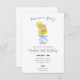 Estas adorables invitaciones de cumpleaños de acuarela presentan un retrato de color agua de un centelleo de limón con un arco de cinta azul atado alrededor del tallo con la leyenda "¡pásame un spritz!"