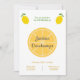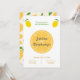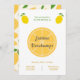 Una invitación de cumpleaños con dos ilustraciones de limón amarillo, un trozo de limón en el fondo y textos de personalizable! La parte de atrás viene con una rebanada, medio y patrón de limón completo. Se pueden personalizar textos y utilizarlos para un fiesta de limpieza, un boda, una jubilación, una despedida de soltera, etc.