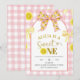 Invitación de cumpleaños coqueta con lazo rosa y amarillo, invitación de cumpleaños editable a cuadros para niños, primera invitación de cumpleaños para niñas