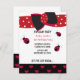 Un diseño lindo con un pequeño ladybugs y un diseño de un puntito polka y corazones rojos sobre un fondo negro.Personalizar con la información de su fiesta como se desee.